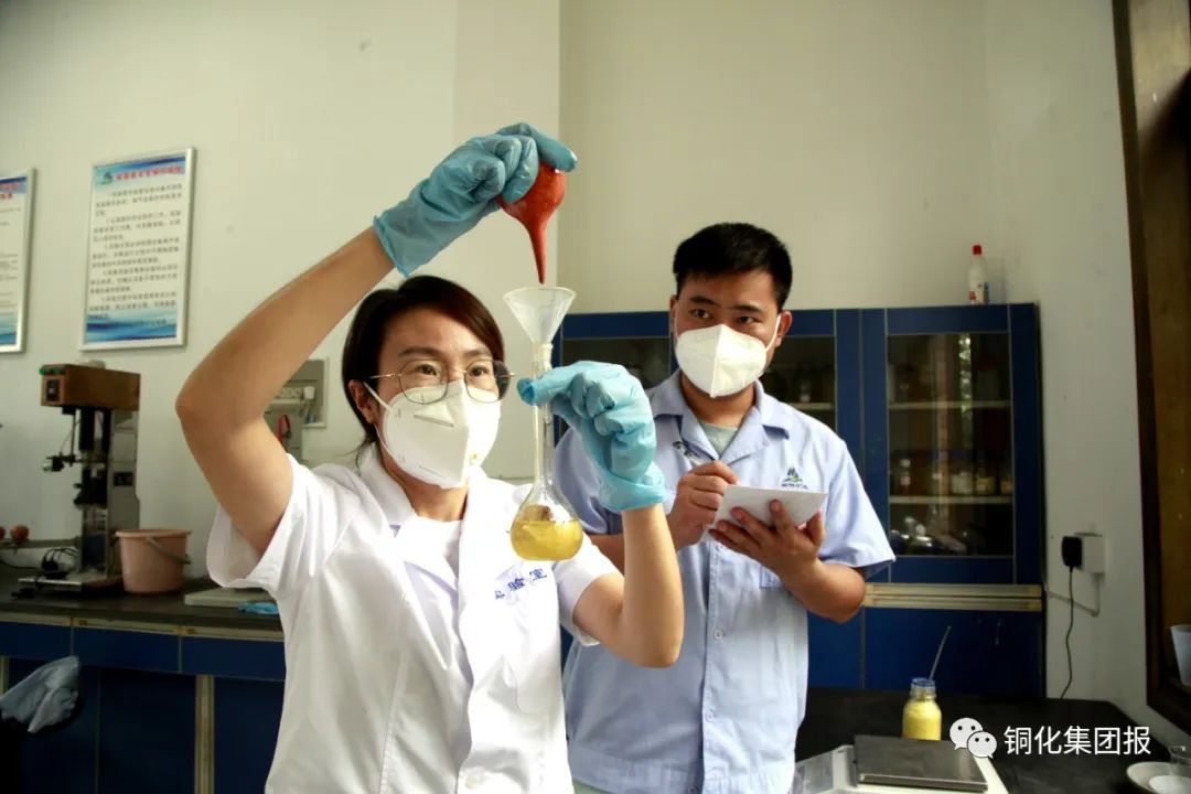 图为试验人员正在配制选矿药剂。