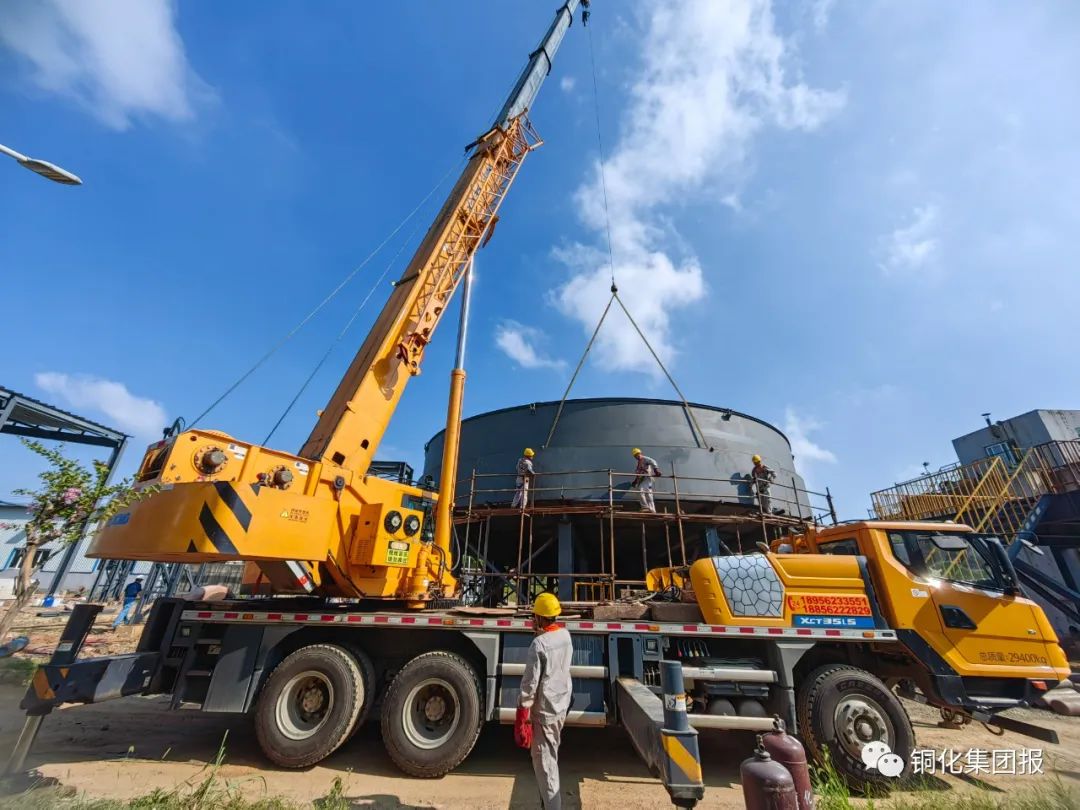 项目完工投用后,每年可处理选矿废水247.5万立方米、酸性废水1000万立方米,去除COD1485吨、硫化物146.03吨、重金属锰208吨,在保障原生产线正常运行的同时,显著降低相关污染物排放,实现外排水水质稳定达标,有效保护当地水环境,环境效益和社会效益显著。上图为吊装作业现场。